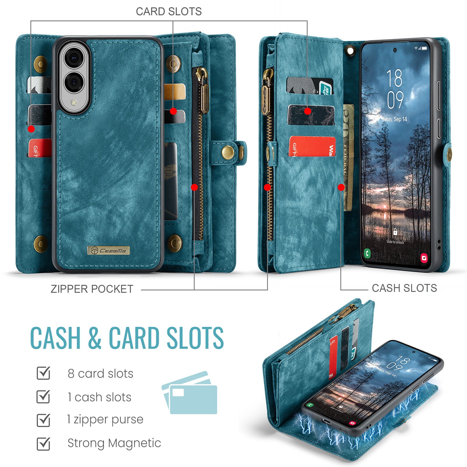 Multi-Slot Handytasche für Samsung Galaxy S25 Edge. Geräumige und sehr praktische Portemonnaie-Hülle mit viel Platz für Karten und Geldscheine. Dein Handy sitzt sicher in der abnehmbaren Magnet-Hülle, und du kannst jederzeit zwischen nur Hülle oder Portemonnaie-Hülle wechseln.