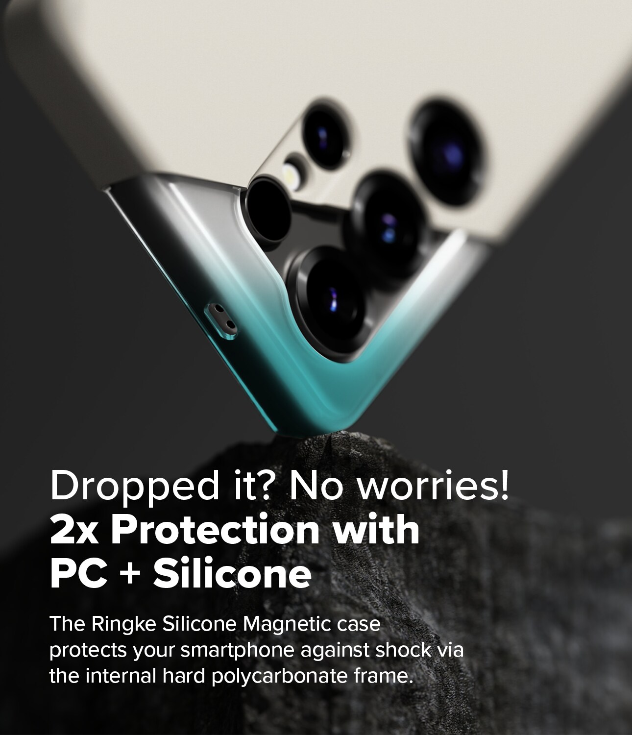 Die Hülle besteht aus drei Schichten für optimalen Schutz: eine griffige und strapazierfähige Außenseite aus Silikon, ein harter Polycarbonatkern zum Schutz vor Stößen und Stürzen, sowie ein weiches Innenfutter aus Mikrofaser zum Schutz vor Kratzern.