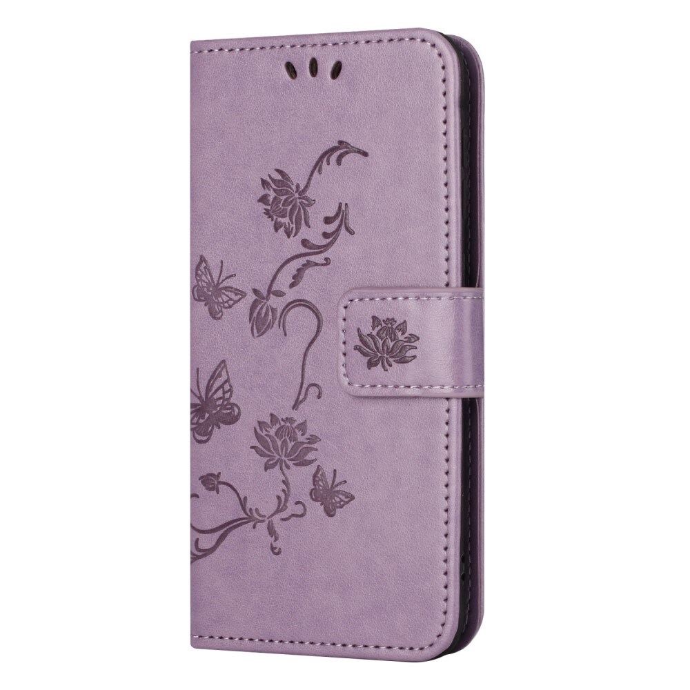 Schicke Handy-Hülle aus Leder mit eingraviertem Schmetterlingsmotiv. Schützt dein Handy vor Schäden, Kratzern und Schmutz und bietet Platz für Karten und Geldscheine. Mit praktischem Magnetverschluss.