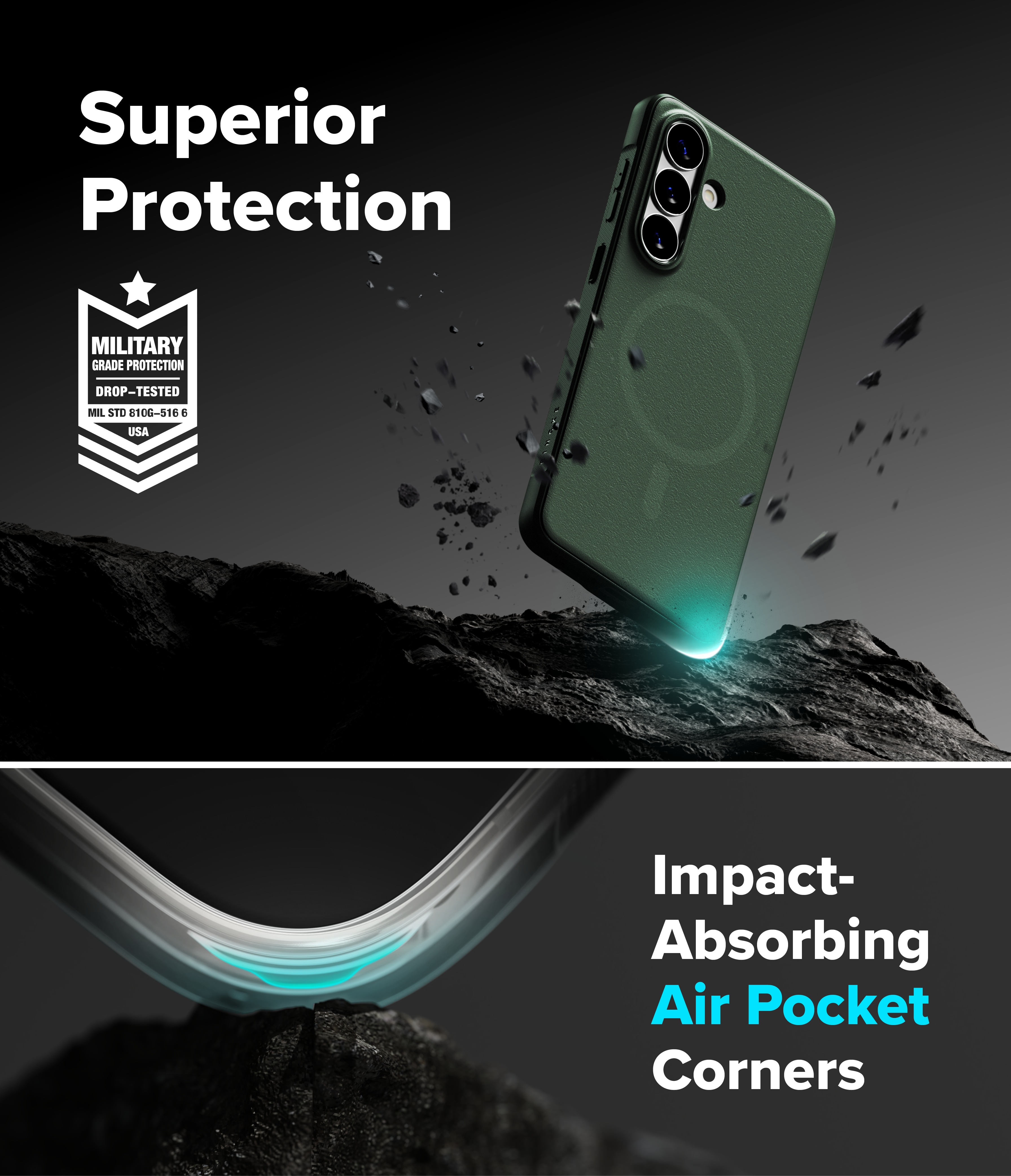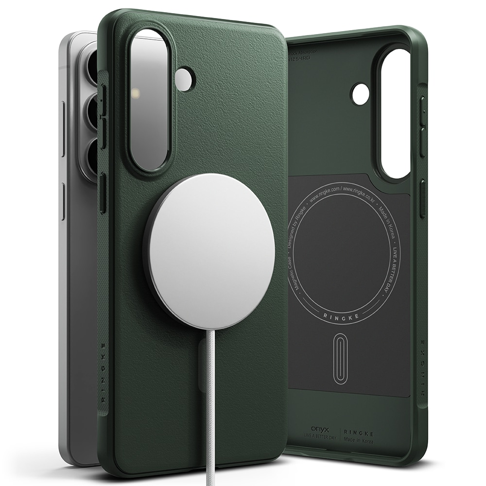 Das Onyx Magnetic ist eine robuste Hülle von Ringke für Samsung Galaxy S26 Plus mit MagSafe. Diese Hülle vereint stilvolles Design mit hervorragendem Stoßschutz. Sie verfügt über verstärkte Ecken, erhöhte Kanten und taktile Tasten. Dank der integrierten Magnetring-Technologie ist die Hülle vollständig kompatibel mit MagSafe-Zubehör und ermöglicht kabelloses Laden mit Hülle.