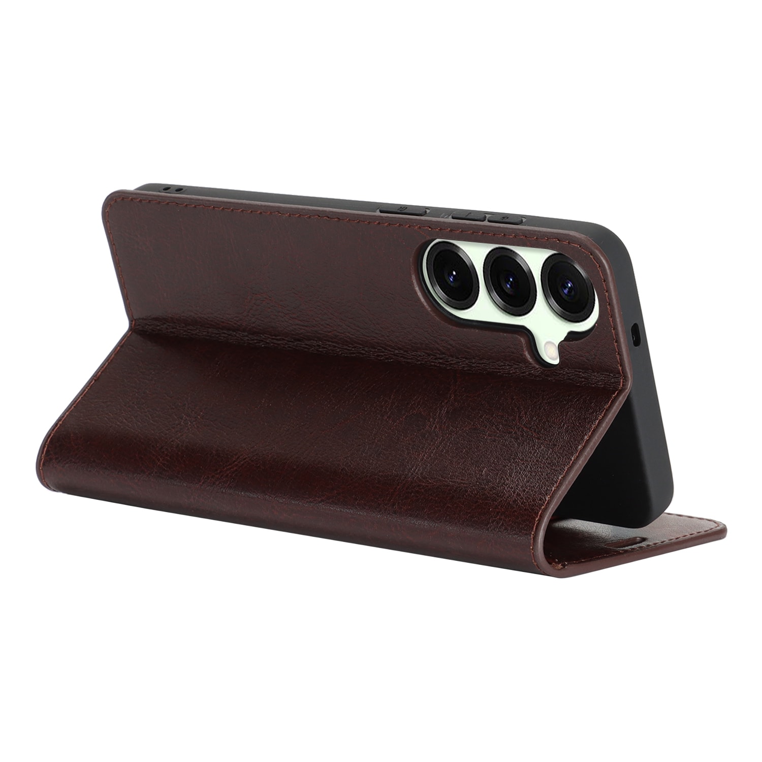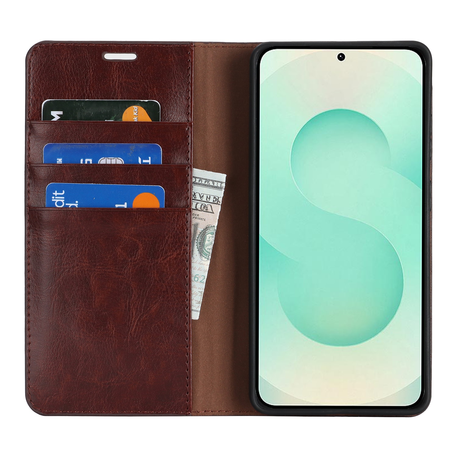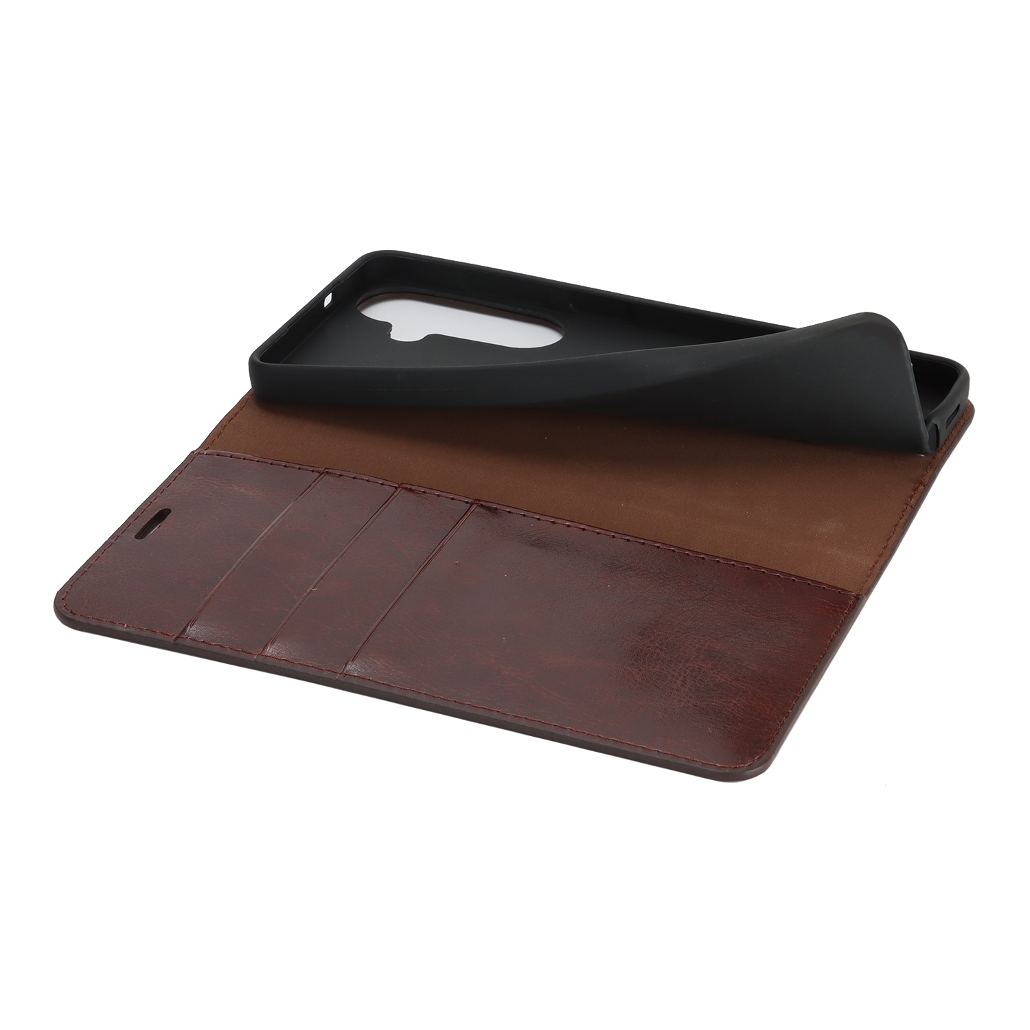 Schützen Sie Ihr Samsung Galaxy S26 Plus mit einer eleganten Hülle aus echtem Leder. Trotz des schlanken und stilvollen Designs verfügt die Hülle über 3 Kartenfächer und 1 Geldscheinfach auf der Innenseite des Deckels. Ihr Telefon wird sicher in einer flexiblen Innenschale gehalten.