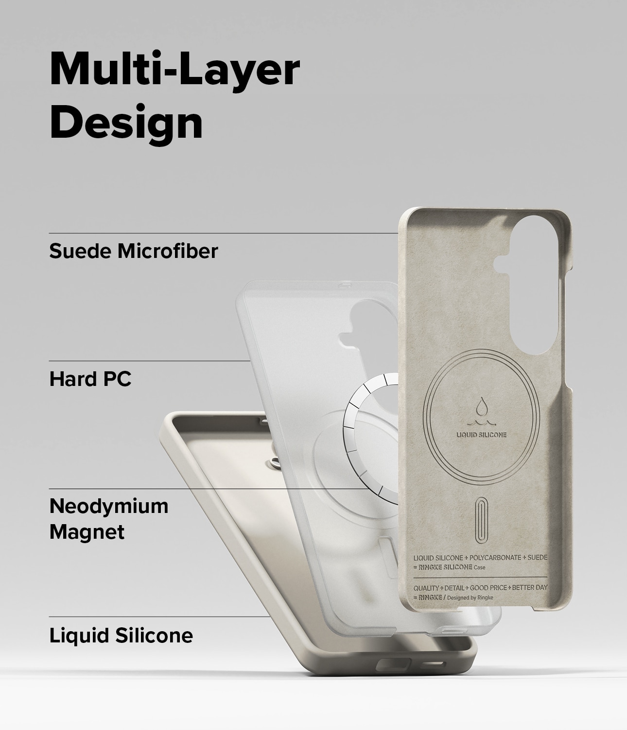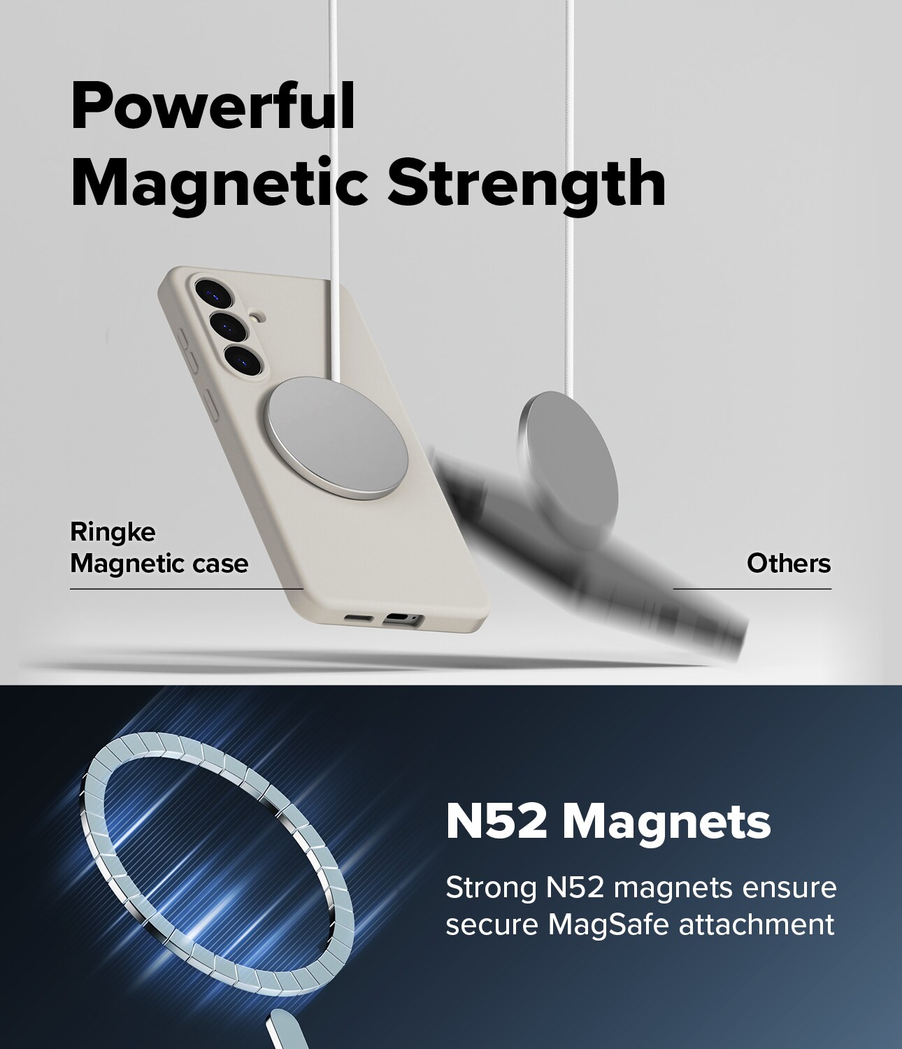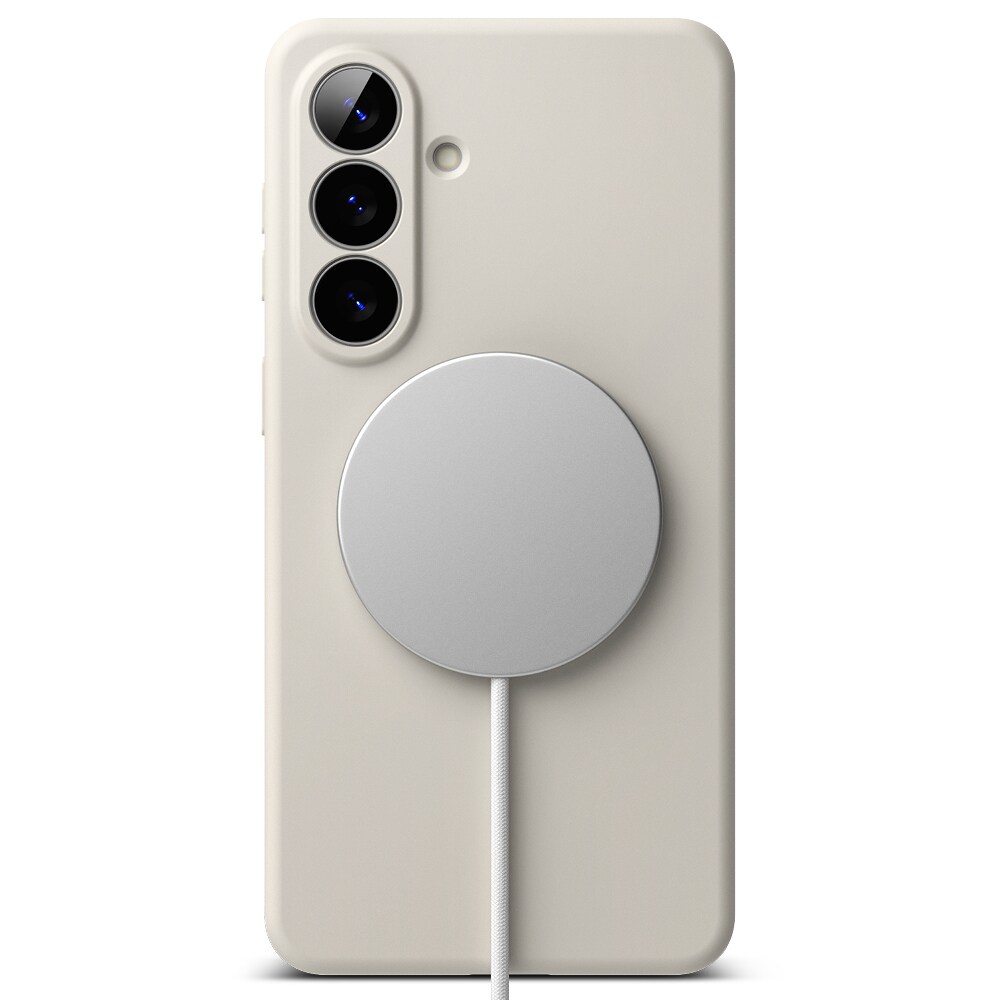 Silikon-Hülle met MagSafe für Samsung Galaxy S26 Plus fra Ringke. Diese stoßdämpfende Hülle bietet zuverlässigen Schutz vor Beschädigungen und ermöglicht dank MagSafe-Unterstützung die Nutzung von MagSafe-Zubehör sowie kabelloses Laden - ohne die Hülle abnehmen zu müssen.