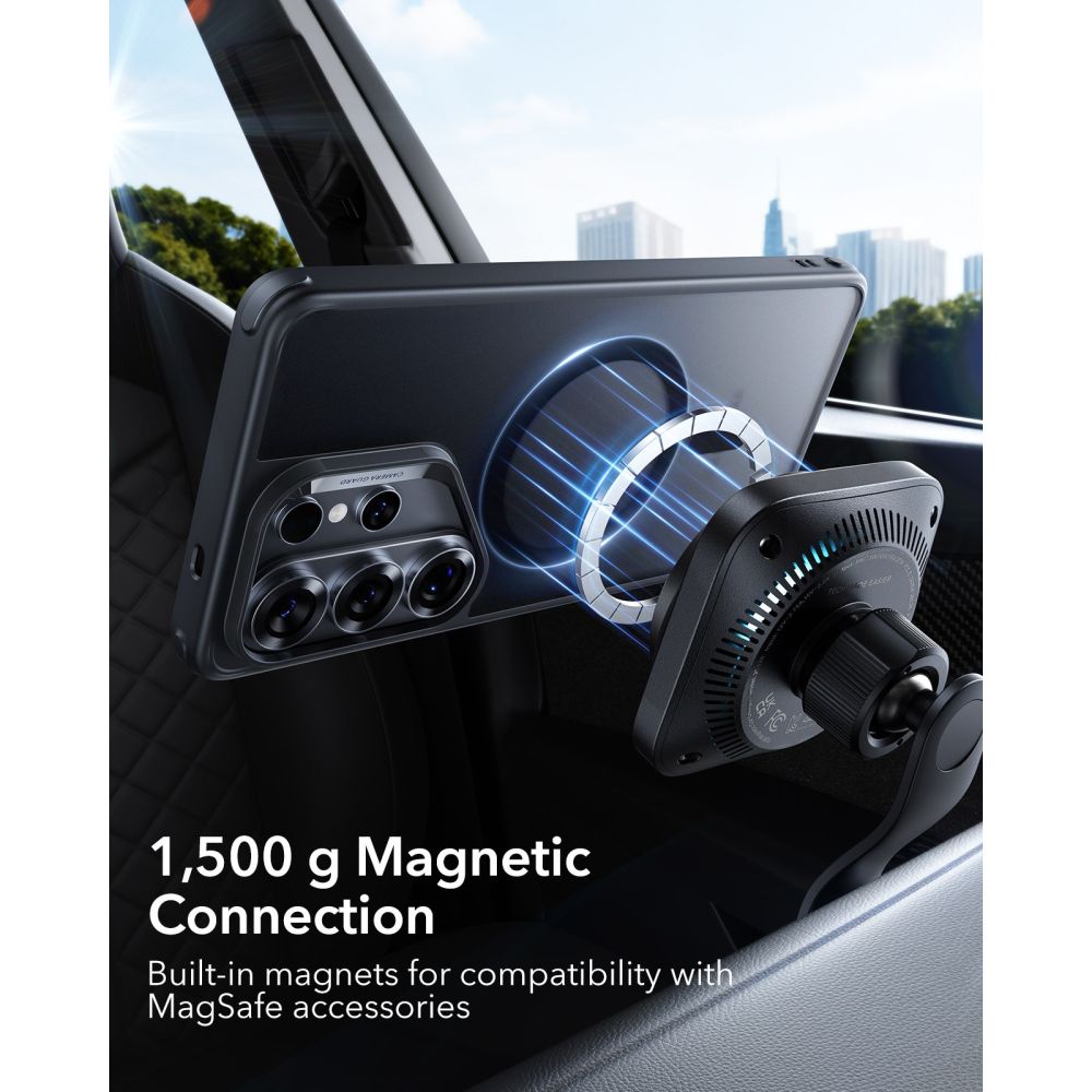 MagSafe-kompatible Hybrid-Schutzhülle von ESR für Samsung Galaxy S26 Ultra. Die Hülle ist transparent, um das Design deines Smartphones sichtbar zu machen, und bietet gleichzeitig zuverlässigen Schutz. Sie besteht aus stoßdämpfendem Material mit verstärkten Ecken – für sicheren Halt ohne Stilverlust. Dank des integrierten magnetischen Rings auf der Rückseite lässt sich ein MagSafe-Ladegerät oder anderes kompatibles Zubehör ganz einfach anbringen.