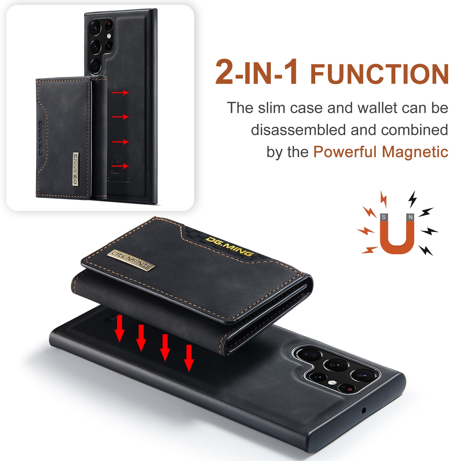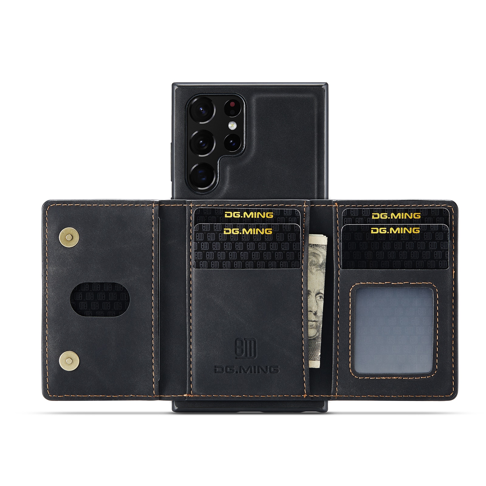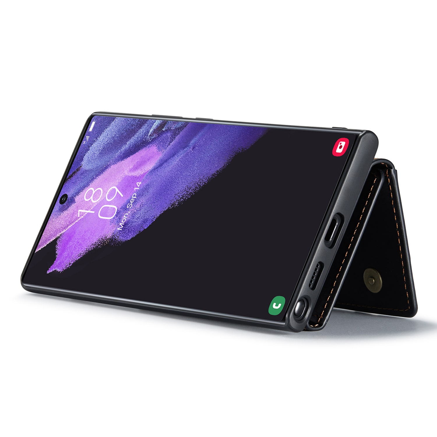 Hülle aus Kunstleder für Samsung Galaxy S26 Ultra mit passender Geldbörse. Die Geldbörse wird magnetisch auf der Rückseite der Hülle befestigt und kann leicht abgenommen werden, wenn du sie nicht benötigst. Durch Aufklappen der Geldbörse kann sie auch als Ständer verwendet werden, sodass du bequem Filme oder Videos ansehen kannst.
