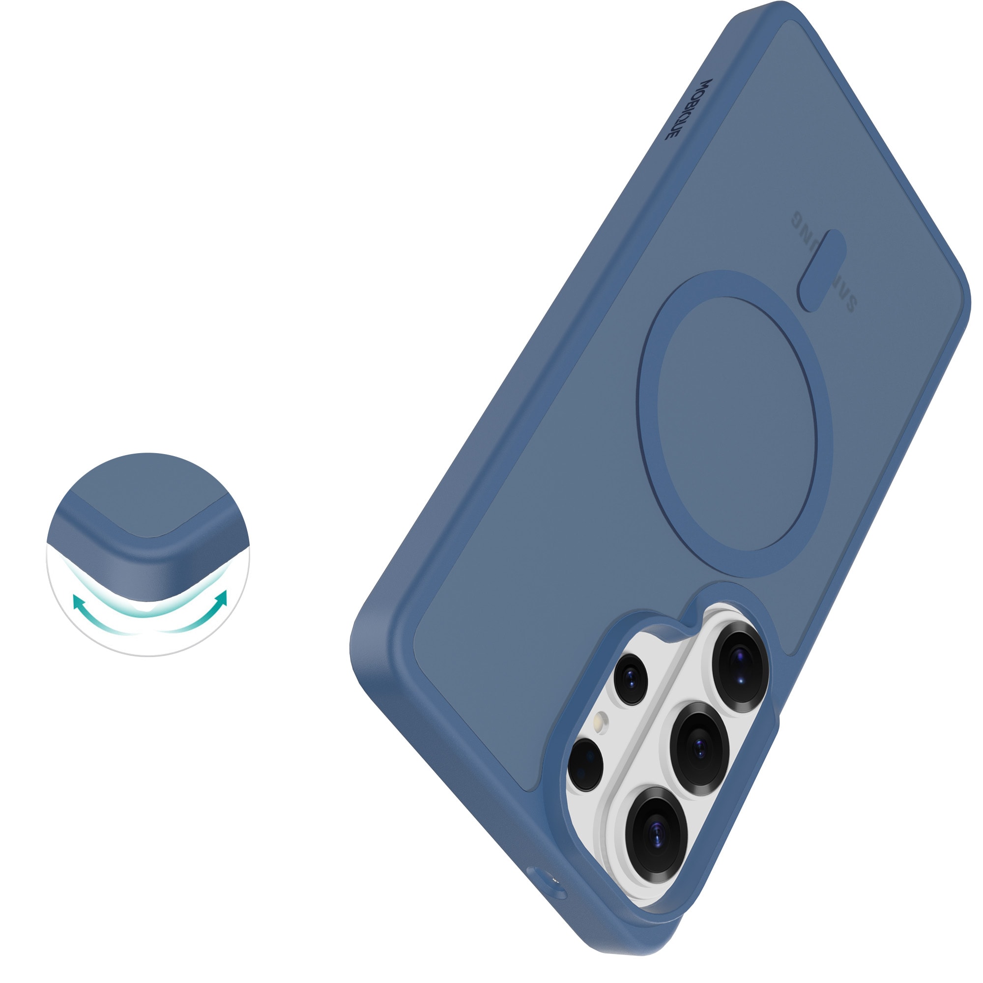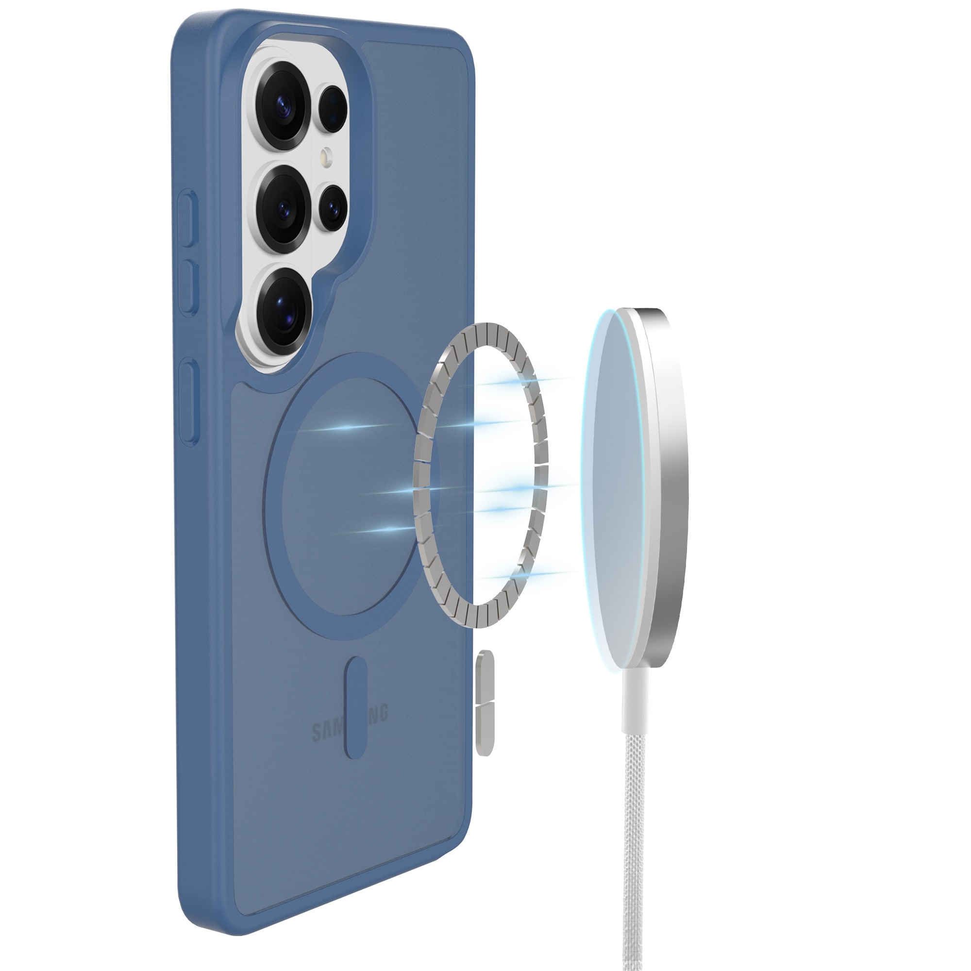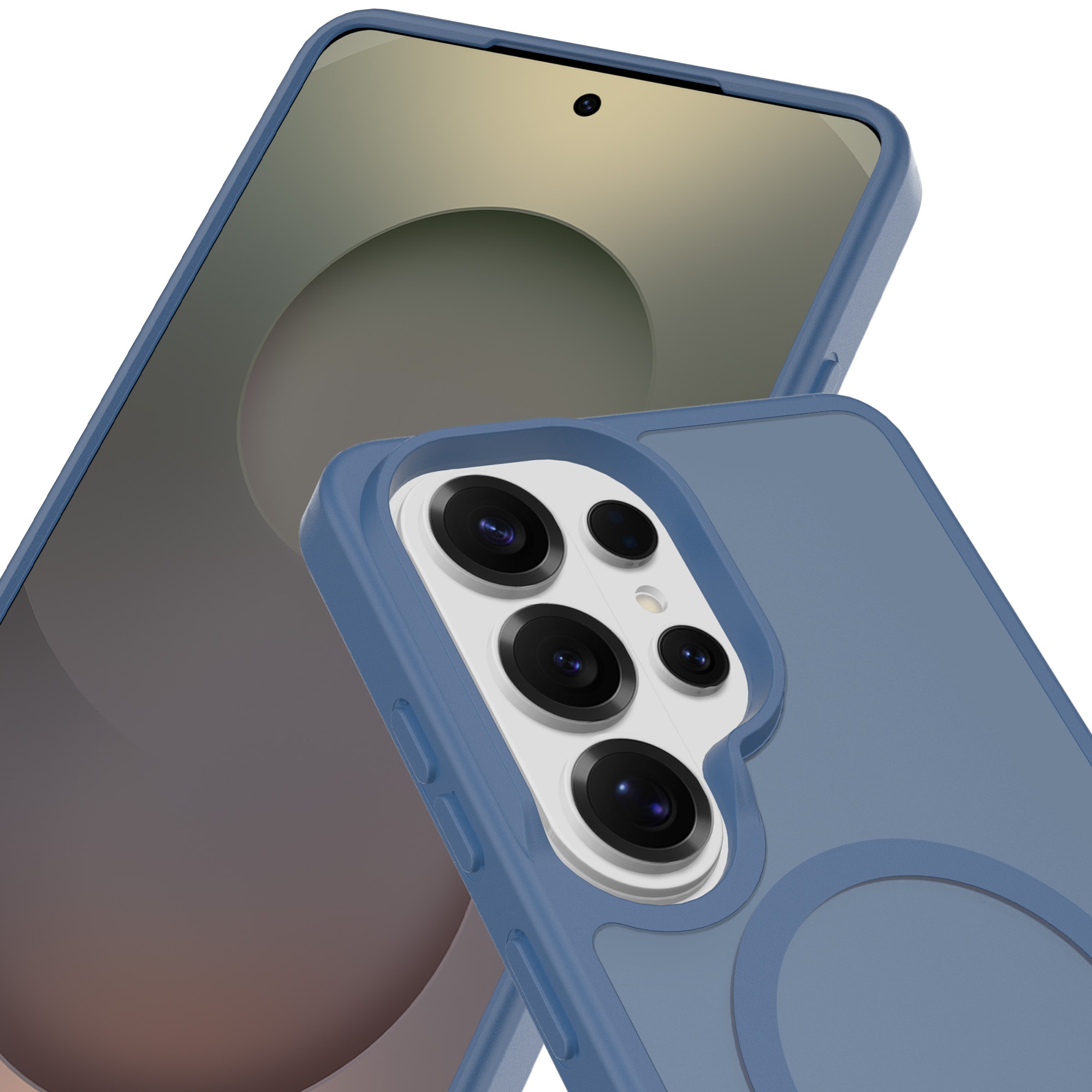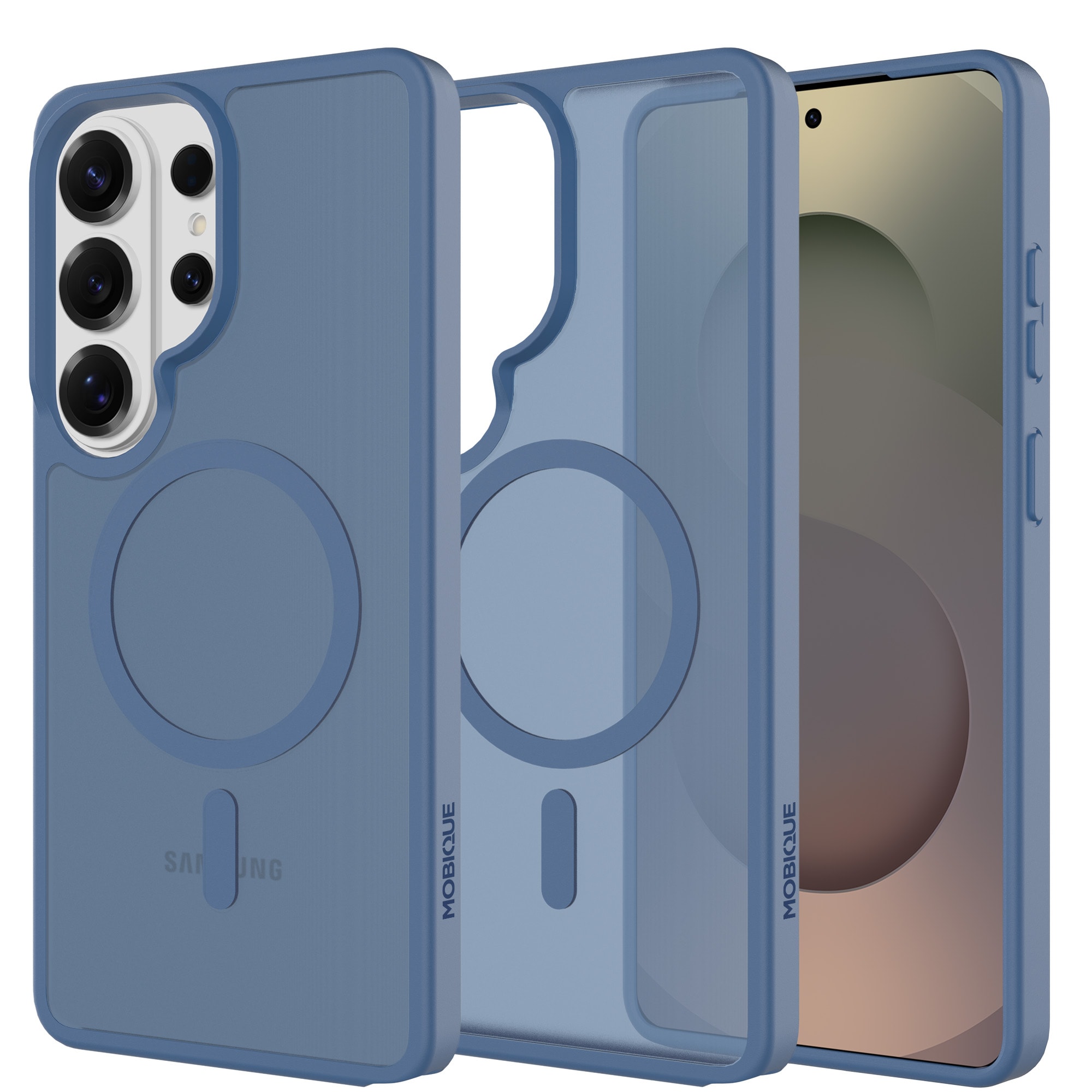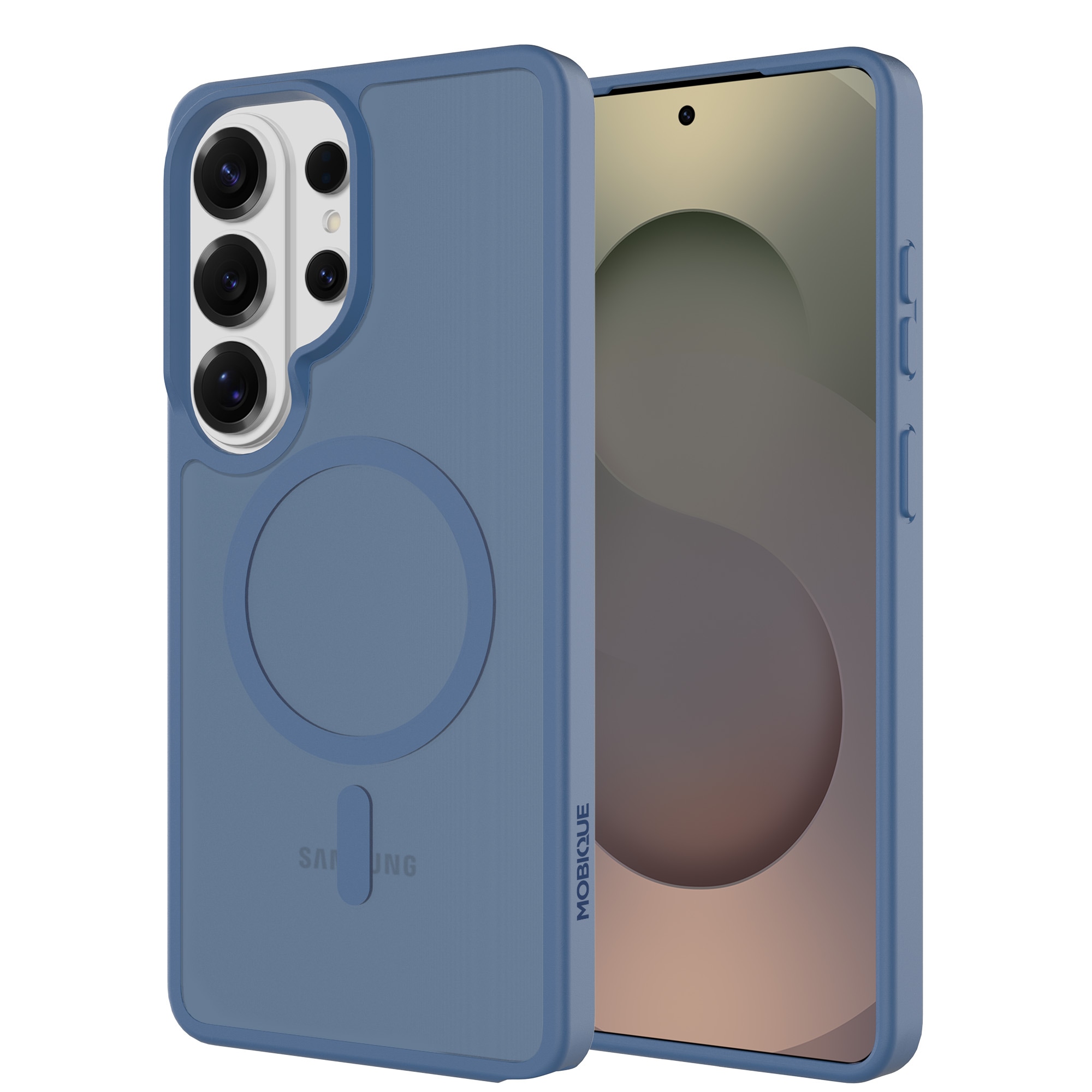 Hybrid-Hülle mit magnetischem Ring für Samsung Galaxy S26 Ultra von Mobique. Die Hülle verfügt über ein elegantes, mattes Finish und ist mit einem magnetischen Ring auf der Rückseite ausgestattet. Der Ring ermöglicht eine nahtlose Kompatibilität mit MagSafe-Zubehör wie Ladegeräten und Kartenhaltern.