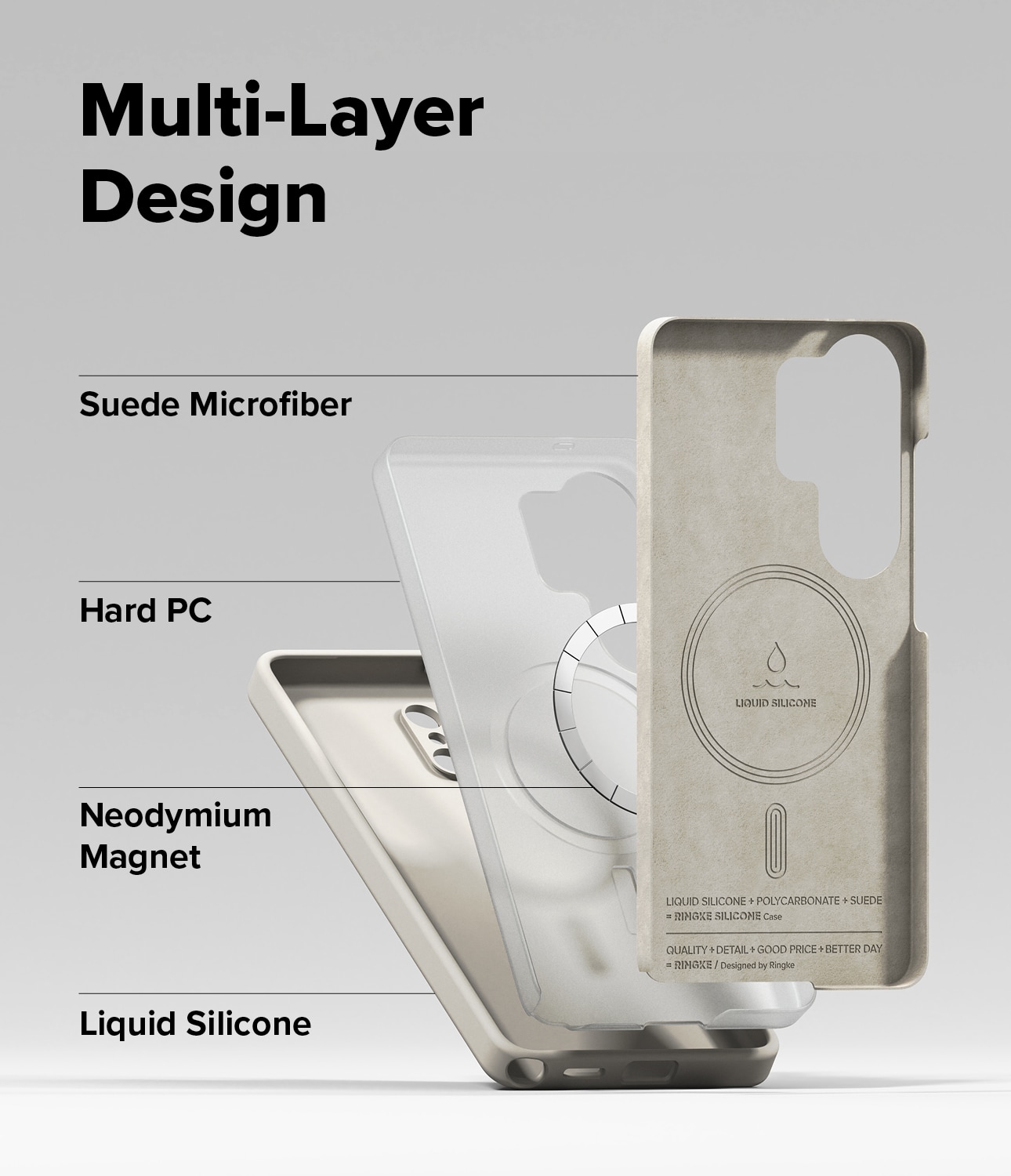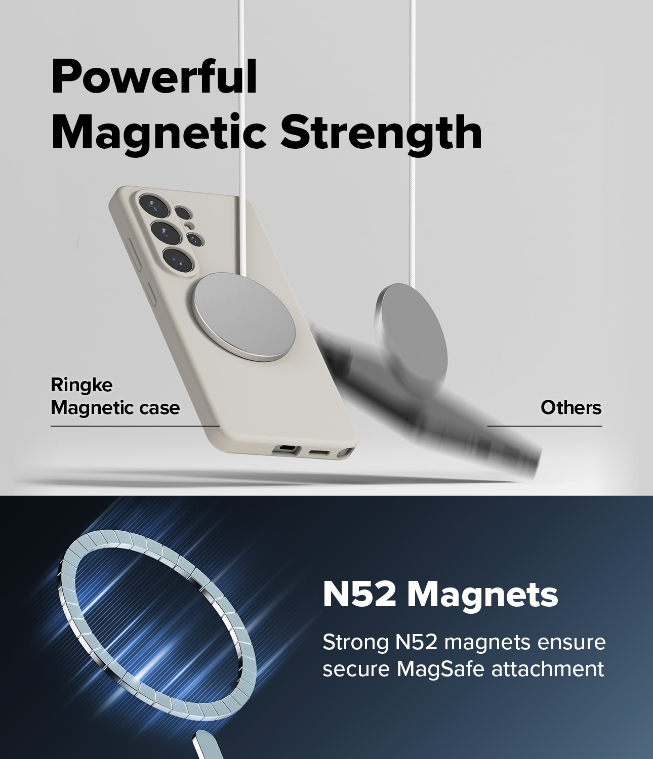 Silikon-Hülle met MagSafe für Samsung Galaxy S26 Ultra fra Ringke. Diese stoßdämpfende Hülle bietet zuverlässigen Schutz vor Beschädigungen und ermöglicht dank MagSafe-Unterstützung die Nutzung von MagSafe-Zubehör sowie kabelloses Laden - ohne die Hülle abnehmen zu müssen.