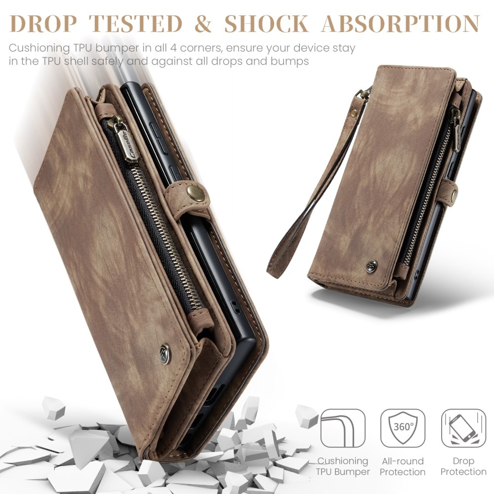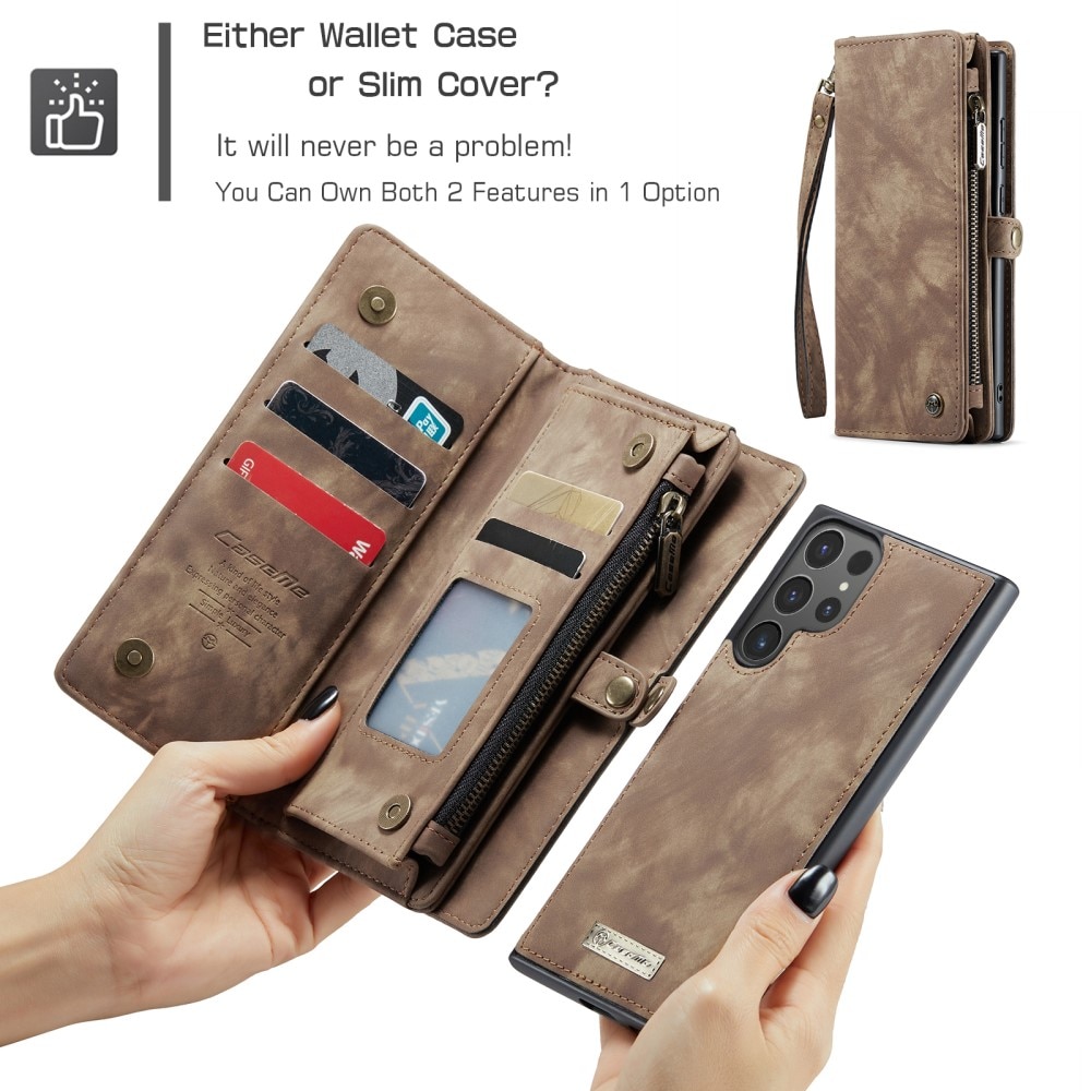Multi-Slot Handytasche für Samsung Galaxy S26 Ultra. Geräumige und sehr praktische Portemonnaie-Hülle mit viel Platz für Karten und Geldscheine. Dein Handy sitzt sicher in der abnehmbaren Magnet-Hülle, und du kannst jederzeit zwischen nur Hülle oder Portemonnaie-Hülle wechseln.