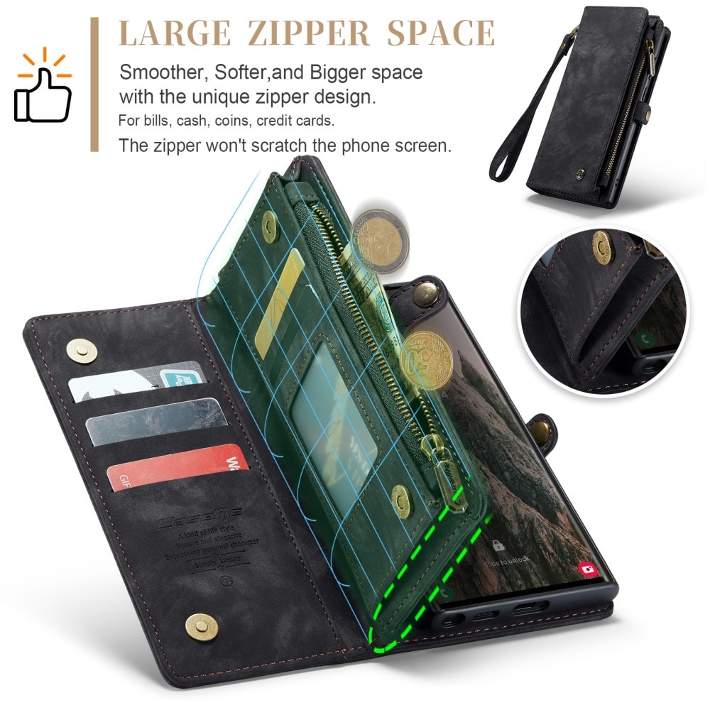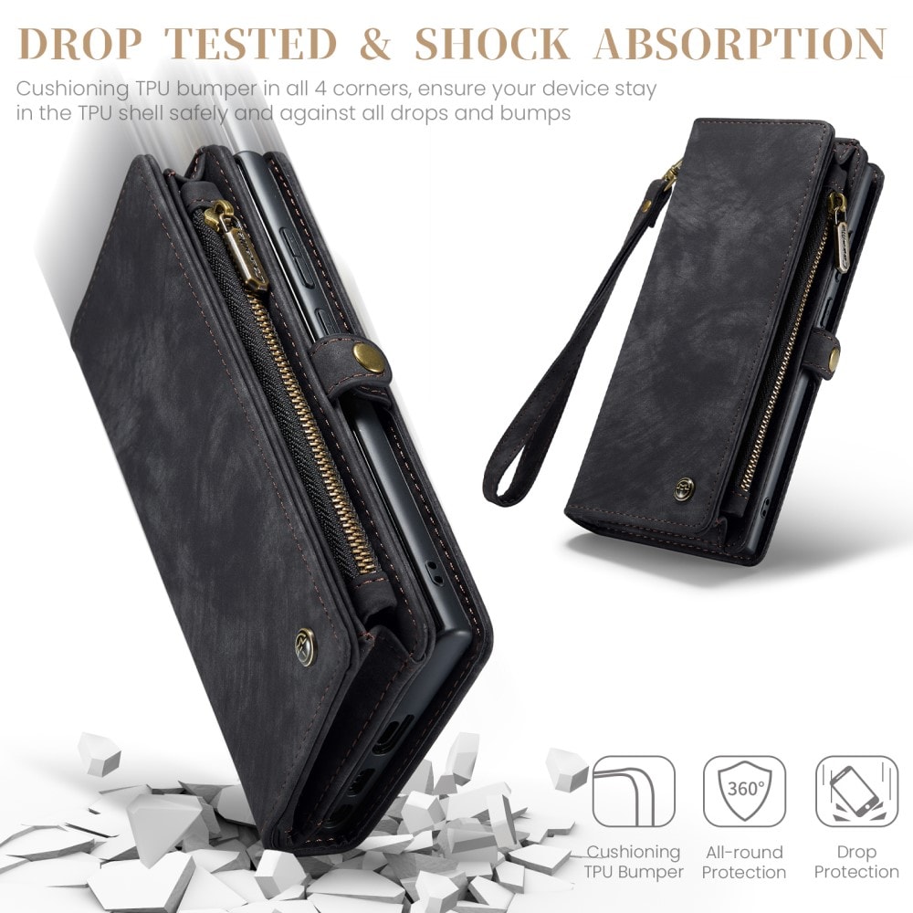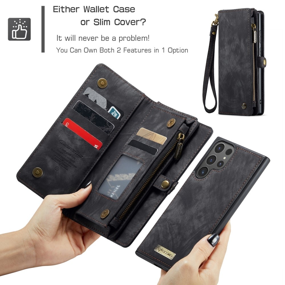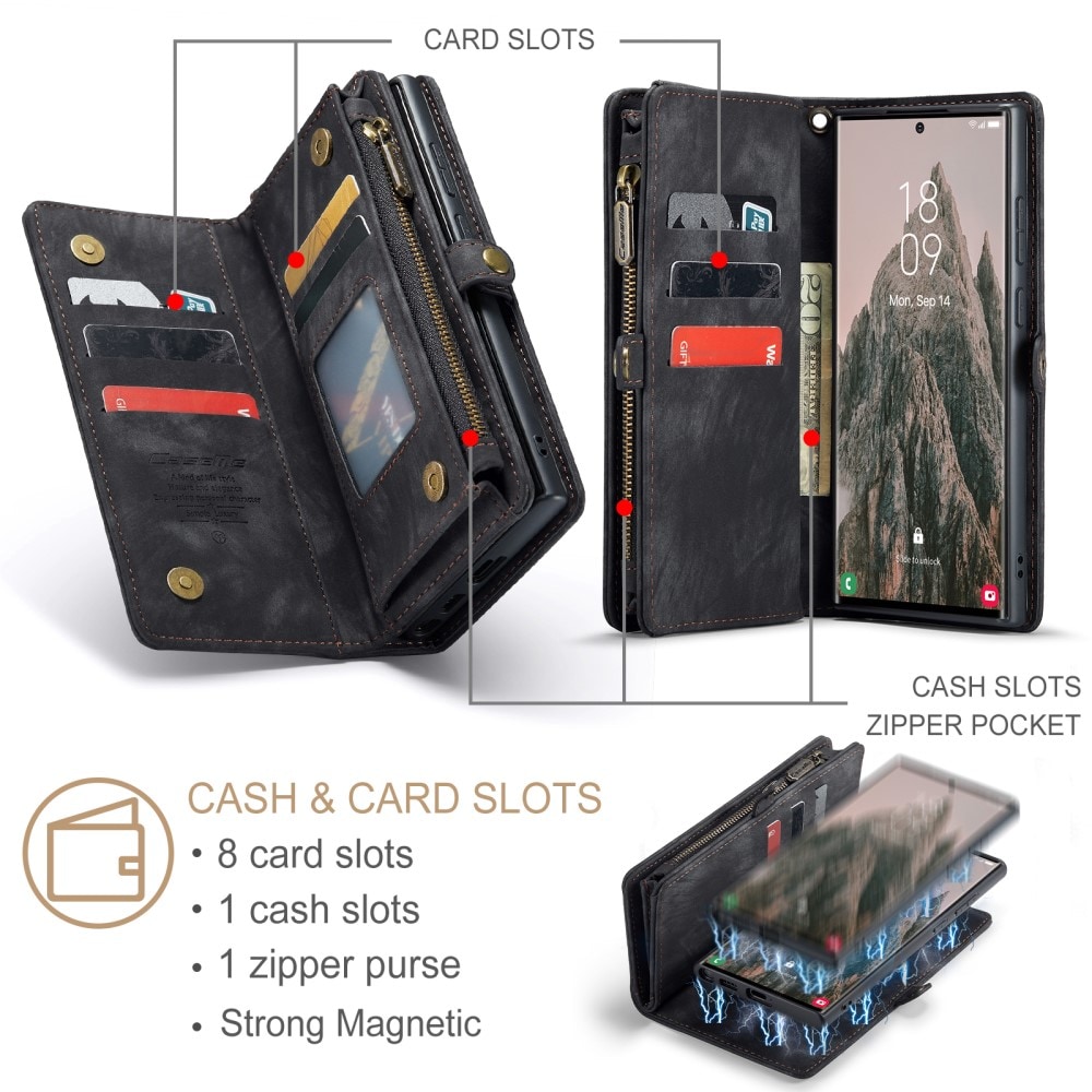 Multi-Slot Handytasche für Samsung Galaxy S26 Ultra. Geräumige und sehr praktische Portemonnaie-Hülle mit viel Platz für Karten und Geldscheine. Dein Handy sitzt sicher in der abnehmbaren Magnet-Hülle, und du kannst jederzeit zwischen nur Hülle oder Portemonnaie-Hülle wechseln.