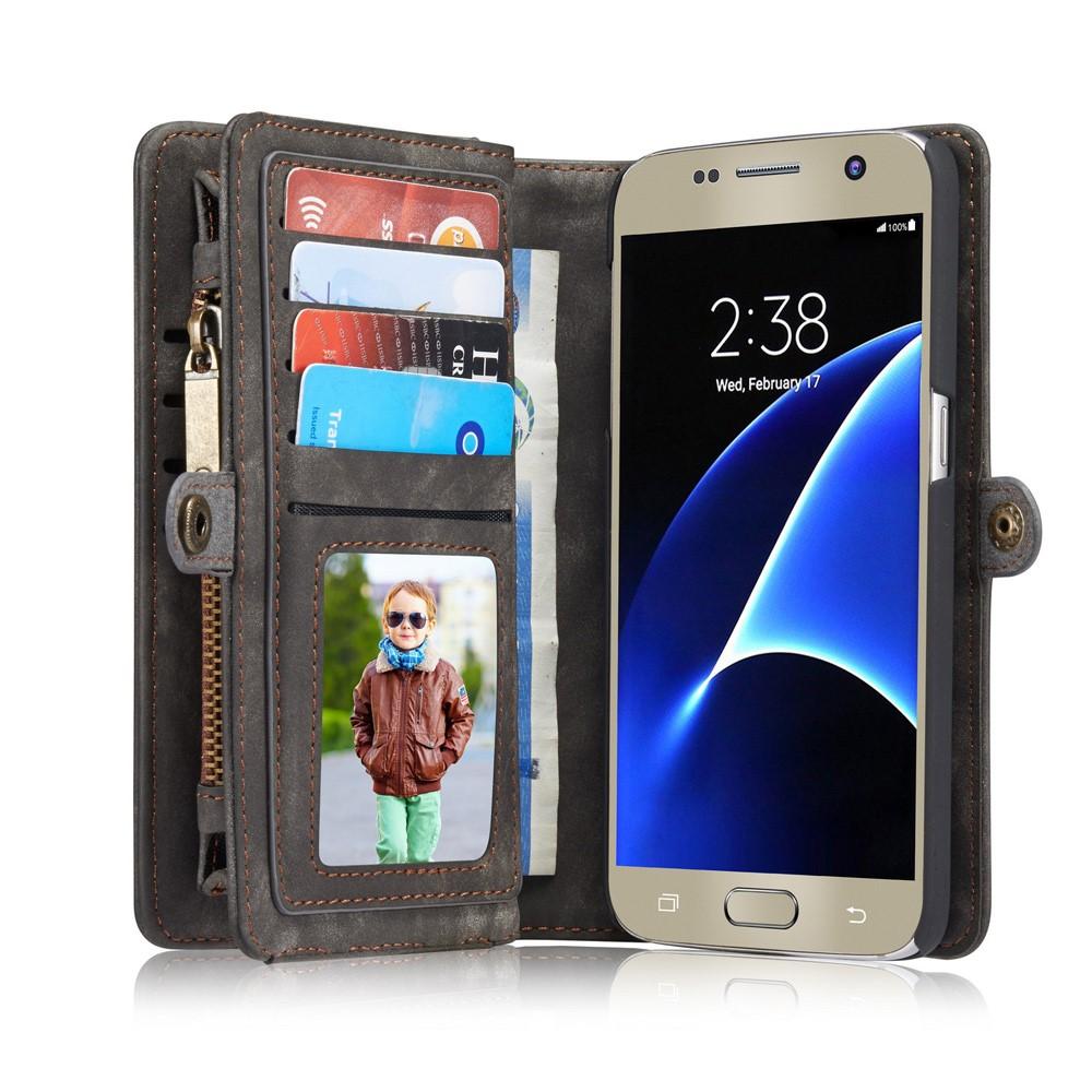 Multi-Slot Handytasche für Samsung Galaxy S7. Geräumige und sehr praktische Portemonnaie-Hülle mit viel Platz für Karten und Geldscheine. Dein Handy sitzt sicher in der abnehmbaren Magnet-Hülle, und du kannst jederzeit zwischen nur Hülle oder Portemonnaie-Hülle wechseln.