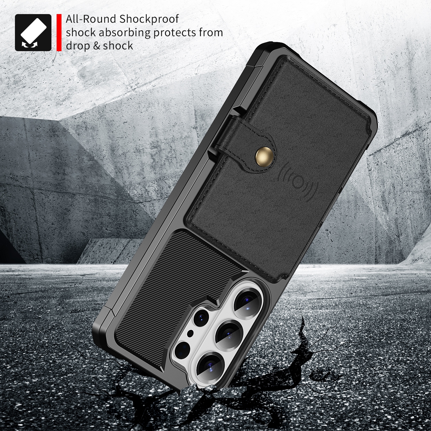 Stoßdämpfendes Handycase mit verstecktem Wallet auf der Rückseite für Samsung Galaxy S26 Ultra. Das Case bietet ein stilvolles Design und verstärkte Ecken für besten Schutz.