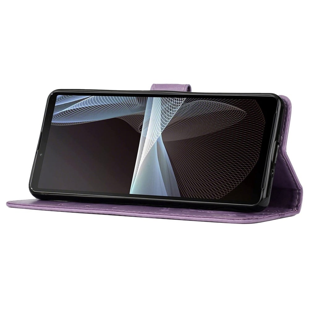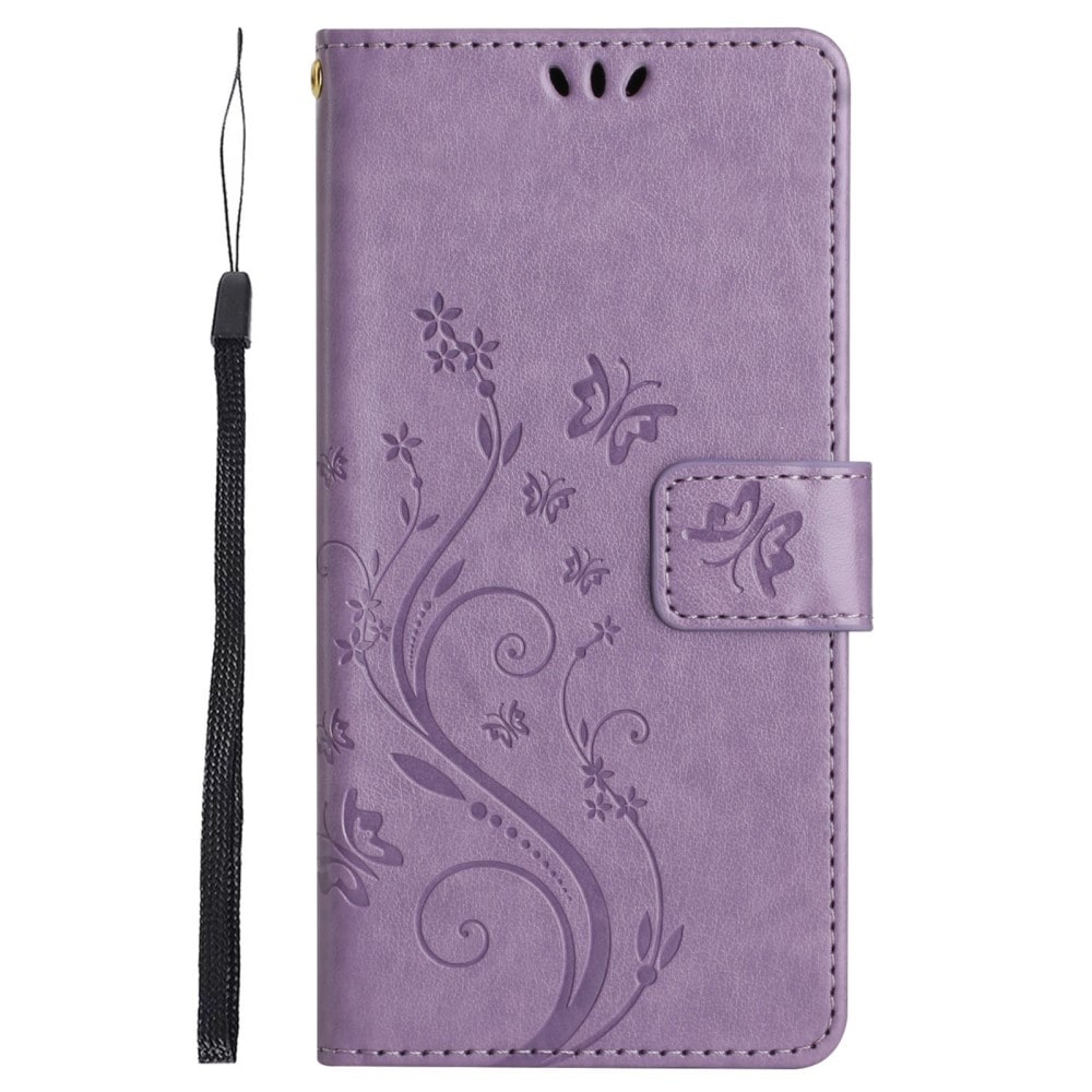 Schicke Handy-Hülle aus Leder mit eingraviertem Schmetterlingsmotiv. Schützt dein Handy vor Schäden, Kratzern und Schmutz und bietet Platz für Karten und Geldscheine. Mit praktischem Magnetverschluss.