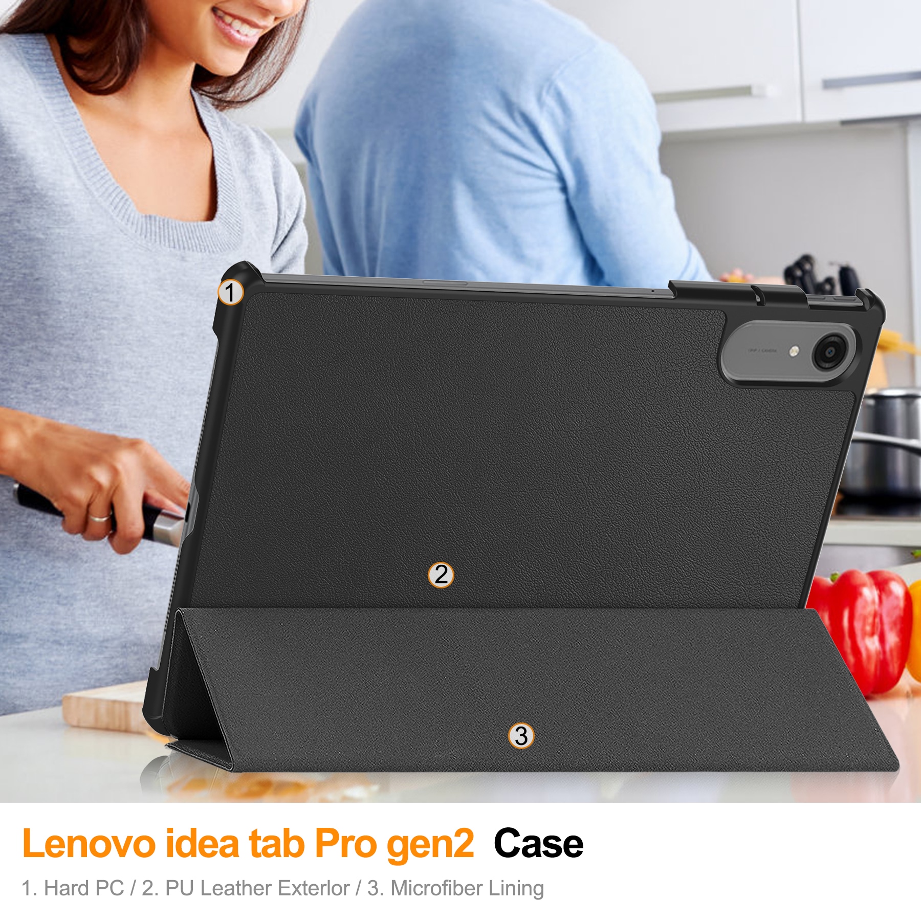 Schützende Hülle für Lenovo Idea Tab Pro (2nd gen) mit faltbarem Deckel, der gleichzeitig als Ständer dient. Die Hülle bietet einen Rundumschutz für das Tablet und verhindert Kratzer und Displayschäden.