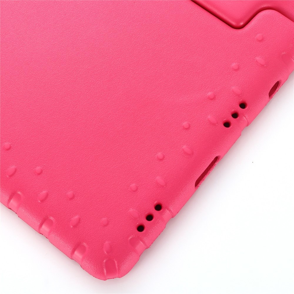 Die Hülle hat einen Griff, der es ermöglicht, das Tablet einfach in der Hand zu tragen. Der Handgriff kann auch so verstellt werden, dass er einen Standfuß bildet – perfekt, wenn man YouTube oder Filme schauen oder Spiele spielen möchte.