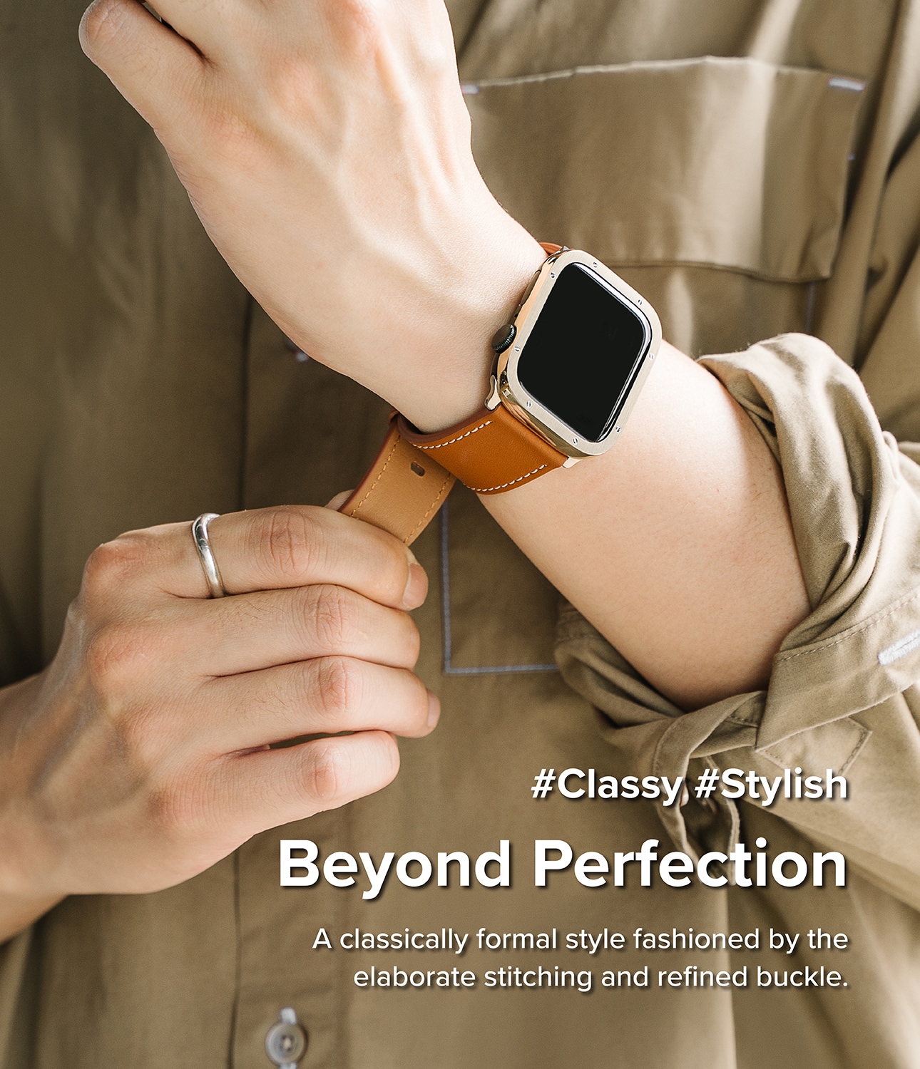 Verleihen Sie Ihrer Apple Watch Series 1-3 42mm ein elegantes Upgrade mit diesem klassischen und exklusiven Uhrenarmband von Ringke. Das Armband wurde für eine komfortable und atmungsaktive Passform entwickelt und eignet sich sowohl für den Alltag als auch für formelle Anlässe. Hergestellt aus hochwertigem Echtleder und ausgestattet mit einer robusten Edelstahlschließe, kombiniert es elegantes Design mit praktischer Funktionalität.