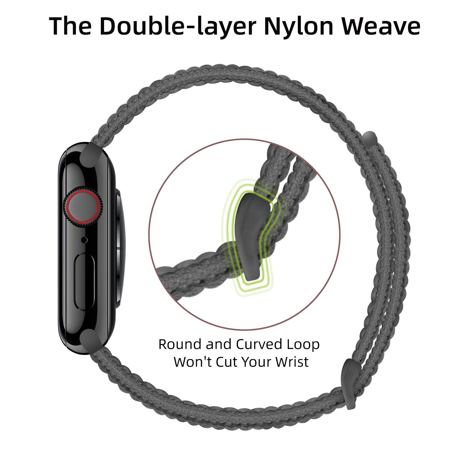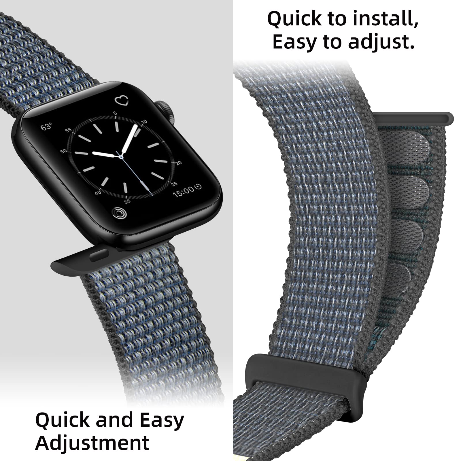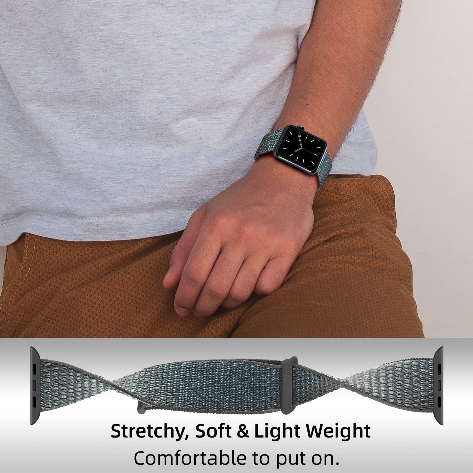 Armband aus weichem und bequemem Nylon, passend für Apple Watch SE 40mm. Das Armband lässt sich einfach verstellen und wird mit einem praktischen Klettverschluss geschlossen, sodass den ganzen Tag über ein komfortabler und sicherer Sitz gewährleistet ist.