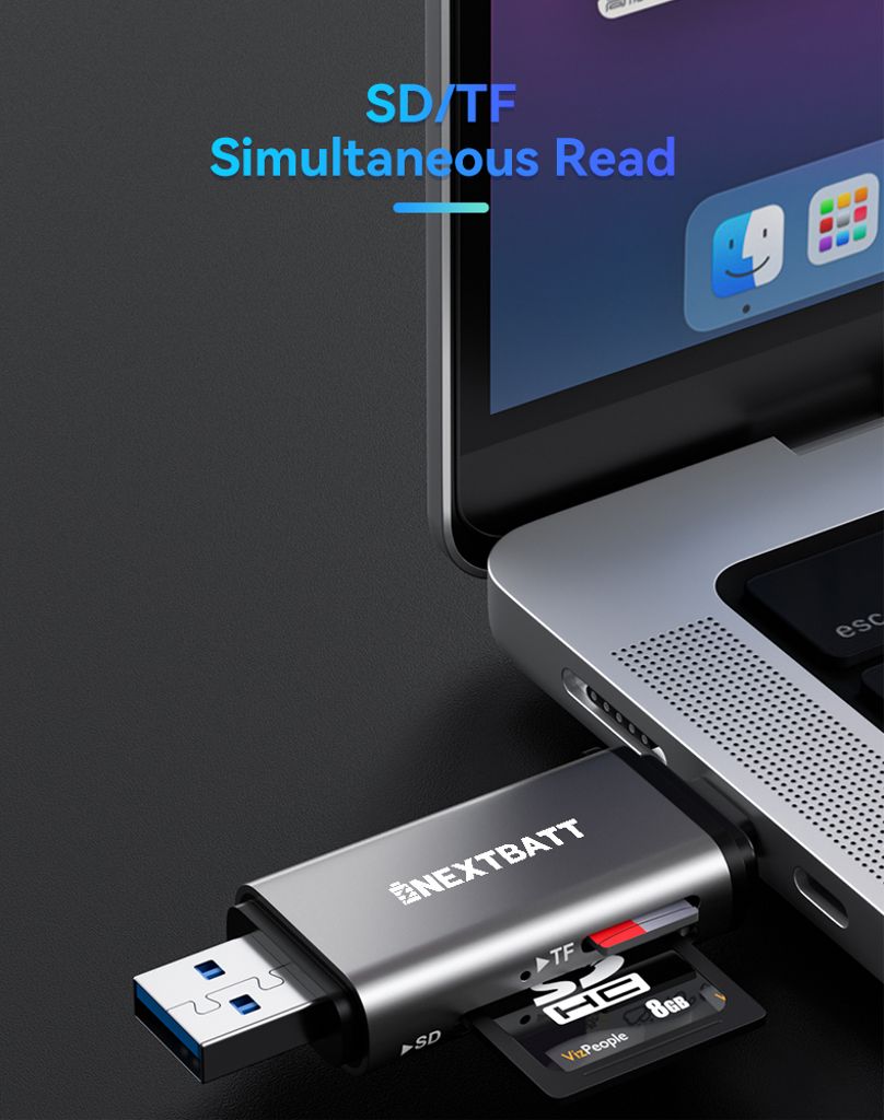 62324SD/TF hukommelseskortlæser USB-A og USB-Chttps://www.phonelife.de/sonstiges-zubehor/speicherkarten/sdtf-hukommelseskortlser-usb-a-og-usb-c?channelCountry=DEhttps://www.phonelife.de/pub_images/original/0_-_-_5_-_-_6_pMCybsF-NEYoUYoPTcbTq.jpgInStock14.95EUR/sonstiges-zubehor/speicherkartenNEXTBATT<p>Der NEXTBATT SD-/microSD Speicherkartenleser mit USB-A und USB-C ist eine kompakte und praktische Lösung für schnelle Datenübertragung zwischen Geräten. Mit Unterstützung für Übertragungsgeschwindigkeiten bis zu 5 Gbps kannst du große Dateien wie Bilder, Videos und Dokumente einfach verwalten. Der Kartenleser ist mit USB-A und USB-C ausgestattet und dadurch kompatibel mit Computern sowie Smartphones mit USB-C-Anschluss und OTG-Unterstützung. Er ermöglicht gleichzeitiges Lesen und Schreiben von zwei Speicherkarten wodurch Dateien direkt zwischen Karten oder zu und von einem Gerät übertragen werden können. Die breite Unterstützung verschiedener Kartentypen macht ihn zu einer flexiblen Lösung für den täglichen Einsatz.</p>